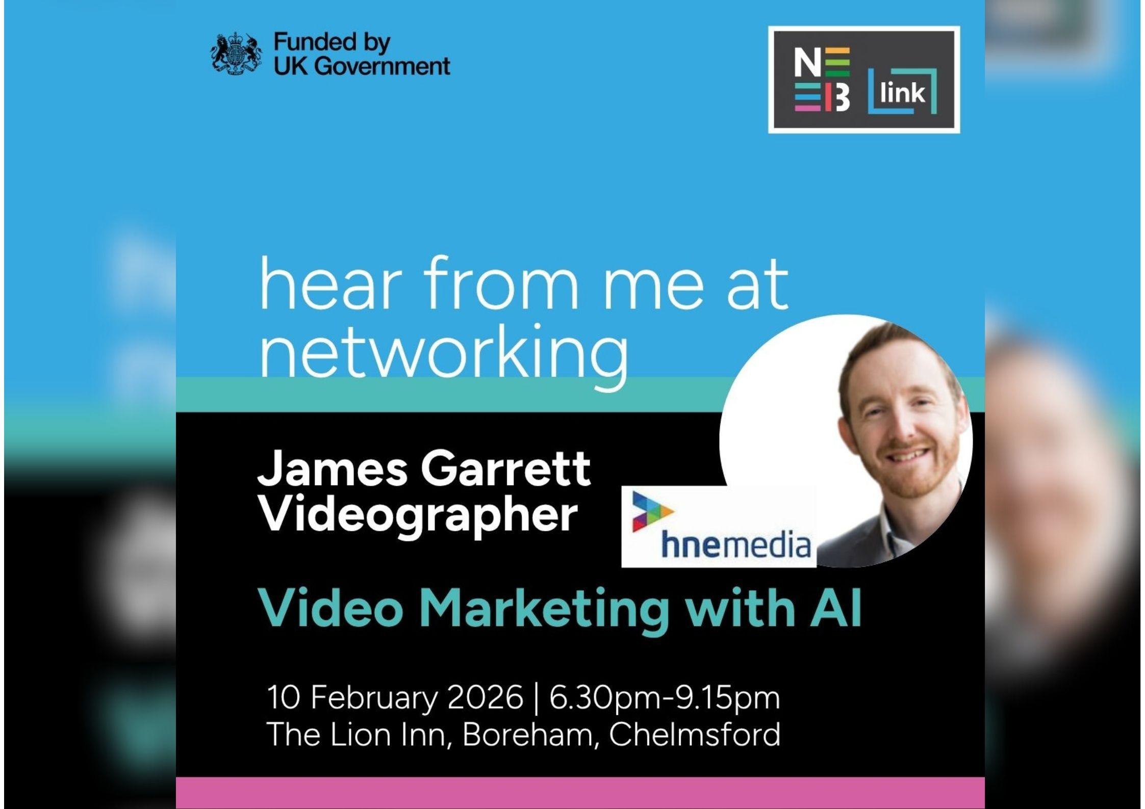 NEEB Link Networking event (6.30pm - 9.15pm) featuring a special session on: Using AI for Video Marketing with James Garrett of HNE Media.
